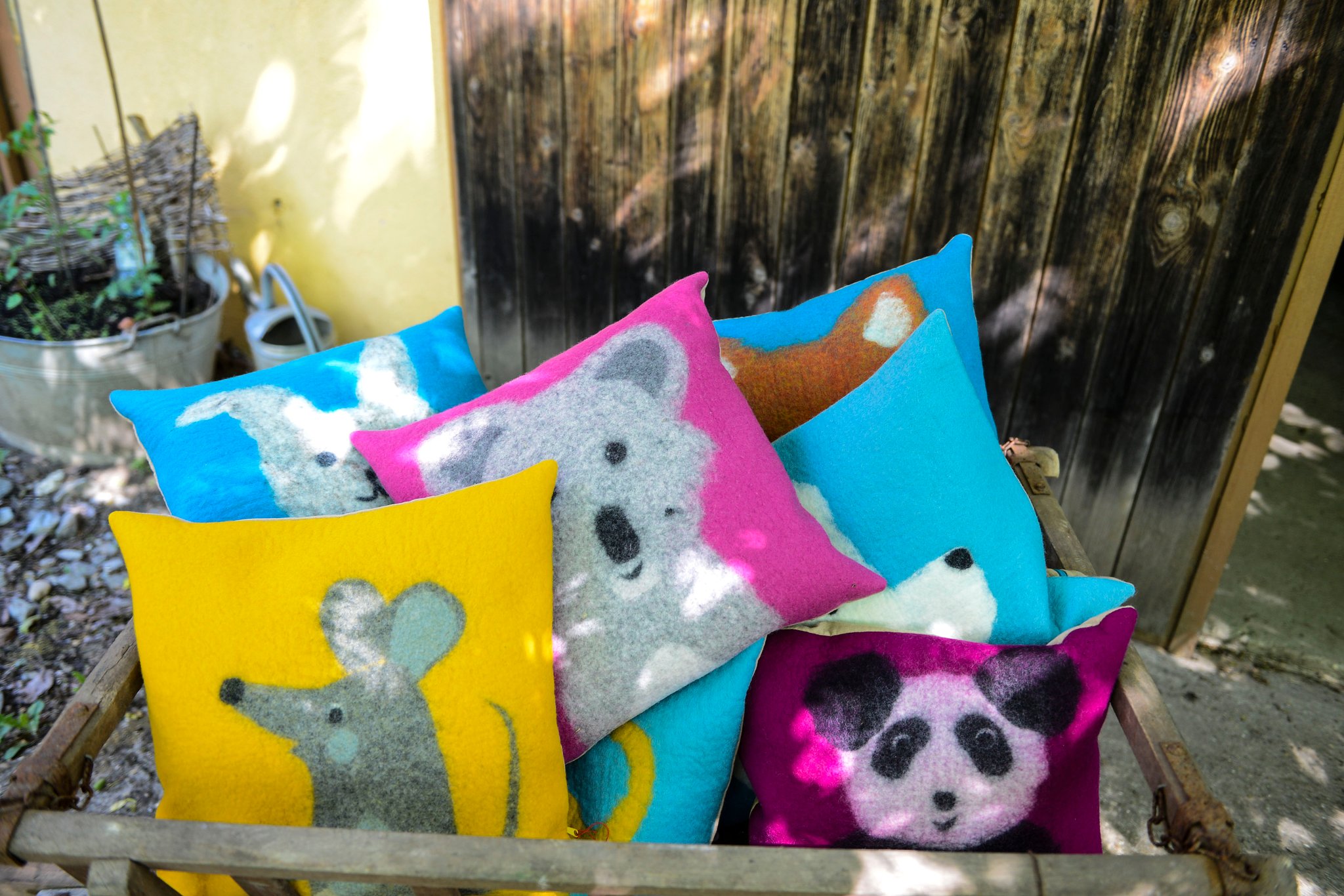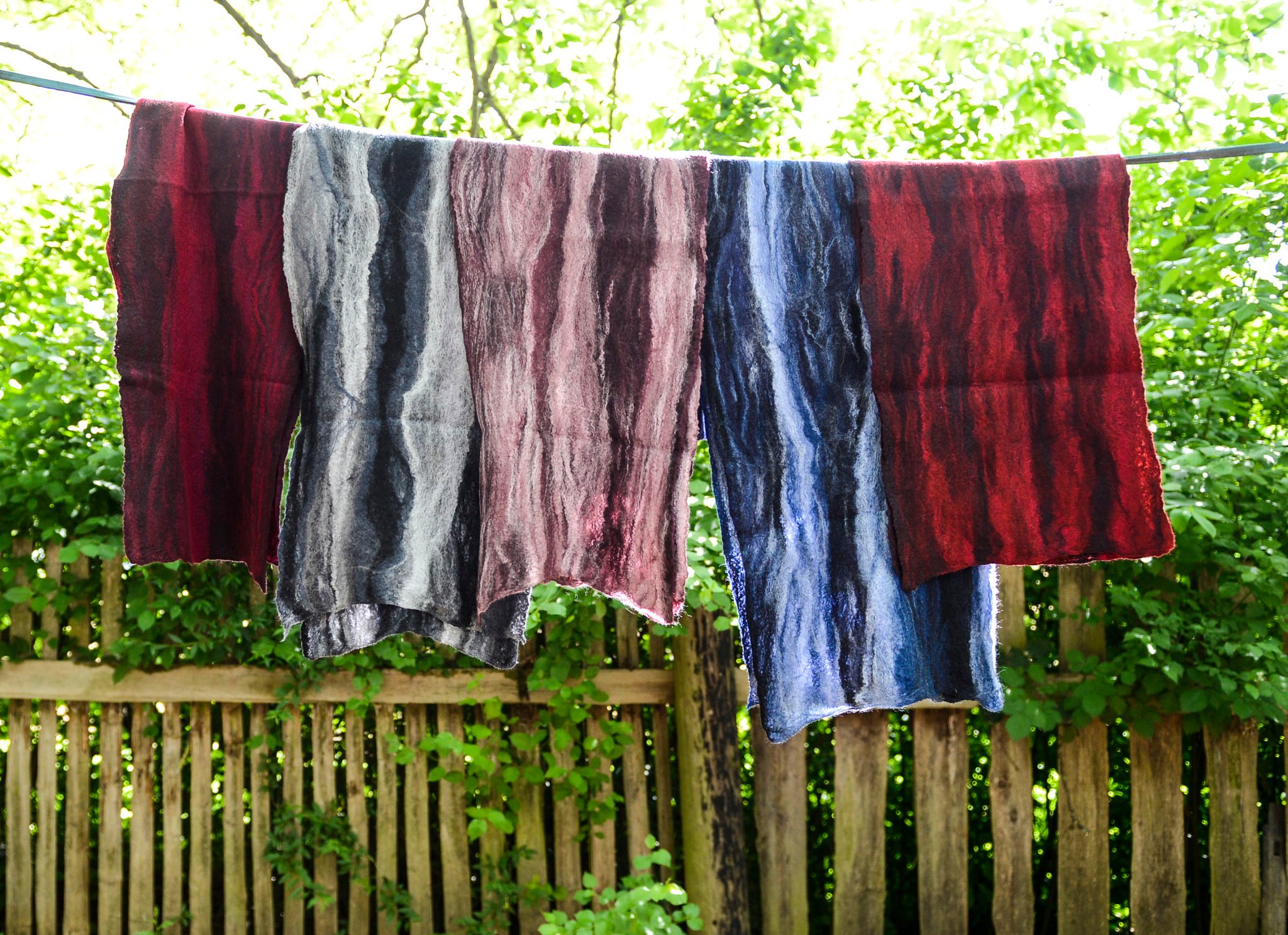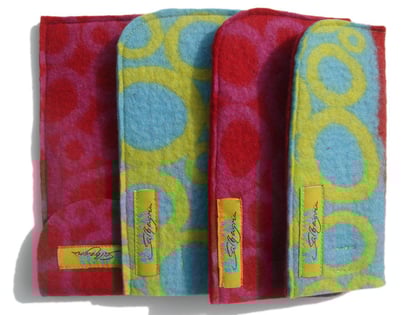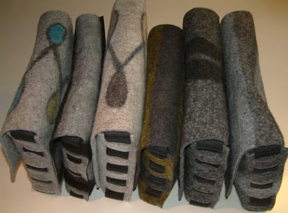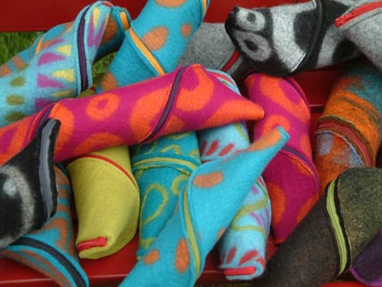 Die bereits vorgefärbte Schafwolle wird von Hand gewalkt und so zu einem fertigen und strapazierbaren Filz verarbeitet. Mit individuellen Mustern und Motiven versehen, wird jedes Teil in diesem Shop zu einem einzigartigen Lieblingsstück.